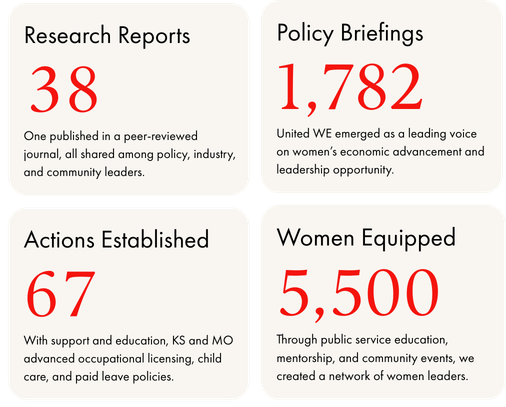 Women across Missouri moved from uncertainty to readiness through United WE’s Journey Groups—gaining the confidence, knowledge, and networks to step into civic leadership. What began as hesitation became a clear sense of belonging and responsibility to lead.